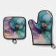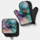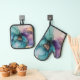 Hübsches Aqua Blue Lila Gold Floral Ofenhandschuh & Topflappen-Set