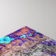 Eine niedliche Auswahl an Aqua-Blume ist auf einem lila, grauen und rostfreien Hintergrund verstreut, mit dunklen Grunge-Details und schwachen Stammesmustern verziert, um ein wirklich einzigartiges und reizvolles Design zu schaffen.
