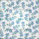 Shabby Chic Blumengewebe mit einem Muster vergessen Sie mich nicht Blume in blau vor einem weißen Hintergrund.