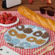 Hübsches blaues Schaumgummiring-Muster-Papierplatte