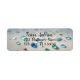 Schönes blaues und aquamarines Meerglas auf einem sandigen Strand Rücksendeadressen-Aufkleber.