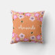 Niedliches Throwkissen für Mädchen. Rosa und weiße Blumen mit den Bienen, die herum fliegen. Personifizieren Sie mit Ihrem Namen.