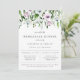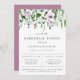 Die Blumenarrangements in Aquarelltönen in Weiß-, Lila- und Grüntönen laden zum Probe-Dinner ein. Chic und modernes typografisches Design. Die Rückseite der Karte weist eine solide lila Farbe auf.
