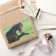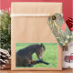 Sticker, mit einem schönen Foto mit einem schönen braunen Pferd in der Bucht im Gras, friedlich und inhaltlich aussehen.