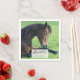Papierservietten mit einem schönen Foto mit einem schönen braunen Pferd, das im Gras liegt und friedlich und inhaltlich aussieht.
