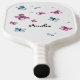 Mit der hübschen Pickleball Fledermaus in der Stadt. Delikate Schmetterlinge in prächtigen Blau- und Rosatönen über diesen stilvollen Schläger. Einfach personalisiert, um ein einzigartiges Geschenk zu schaffen.