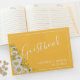 Hübsches, kundenspezifisches Gästebuch-Design mit Aquarellfarben-Molkerei-Ecke auf dunkelgelbem Hintergrund mit weißen, anpassbaren Textblöcken in modernen Schriftart