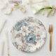 Sehr schöne Blume im blauen und cremefarbenen Boho-Stil mit hellbraunem Blattwerk auf Aubergschalen-Hintergrund.