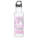 Personalisieren Sie diese hübsch rosa Einhorntrinkflasche mit einem Namen. Die Gestaltung ist niedlich mit Blume und Blattwerk.