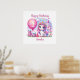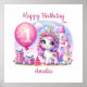 Ein hübsches Einhorn feiert ihren ersten Geburtstag mit Geschenken, einem rosa Ballon und einer rosa Burg. Ideal für die erste Geburtstagsfeier eines kleinen Mädchens. Fügen Sie Ihren eigenen angepassten Text hinzu.