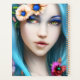 Personalisiertes Notizbuch mit märchenhafter Kunst. Hübsches Märchen mit blauen Haaren und Blume in ihren Haaren und blauen Augen. Fantasiekunst ai art. generativekontrolle