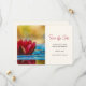 Save the Date Karte mit einem Foto eines Teiches mit einer hübschen, roten Lotus-Blume, die oben rausspringt.