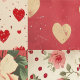 Rotes Vintages Shabby Chic Dots Herz Florals Mix. Schöne Mix-Muster Vintage Shabby Chic Patchwork Collection. Hübscher Stil in stilvoller Hütte mit gebeugter Optik. Moderner Retrostil. Tapete im Stil der Hütte.