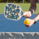 Dieses hübsche, stilvolle Pickleball-Paddel zeichnet sich durch ein Blumenmuster in Gold, aquamarin, rot und cremefarben aus, das auf einem eigenen, navy-blauen Hintergrund dargestellt ist. Eine Textvorlage ist für die Personalisierung (auf beiden Seiten!