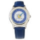 Kinderuhr aus Edelstahl mit blauem Lederarmband