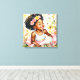 Hübsches kleines Mädchen in rosa Blume Wasserfarbe Leinwanddruck