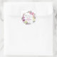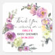 Hübsch und gürlich lila, rosa und grüne florale Aquarellkranz "danke" quadratische Aufkleber für eine Babydusche. Dieser quadratische Aufkleber hat einen weißen Hintergrund und einen eleganten dunkelgrauen und heißen rosa Text. Persönlich gestalten, indem Sie Ihren eigenen Namen und Ihr Baby-Duschdatum hinzufügen. Sie können sogar die Textfarbe und den Stil des Schriftartes mit der Option Anpassen ändern.