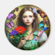 Hübsches Mädchen mit roten Blume und Schmetterling Magnet
