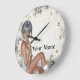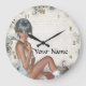 Hübsches Mädchen und Silberdamtel Große Wanduhr