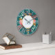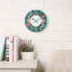 Hübsches modernes BlumenCollage | Monogramm Große Wanduhr