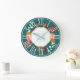 Trendy hübsche, moderne Blumencollage mit aquamarinen weißen Ziffern und Monogramm-Buchstaben. Dekorieren Sie Ihre Zuhause für den Frühling mit dieser schönen Blumenuhr!