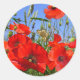 Hübsches Mohnfeld mit Schmetterling Runder Aufkleber