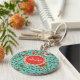 Ein aquamarinfarbener Schlüsselanhänger mit einem hübsch orangefarbenen und pfirsichfarbenen Blumenmuster mit marinen und grünen Blätter. Personalisieren Sie, indem Sie Ihren Namen und Monogramm in die Kirschtomate Rot abgerundeten Achteck-Abzeichen. Dies ist Teil der Aquamarine Floral Cherry Tomato Red Monogram Collection.
