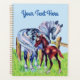 Dieser Planer hat ein hübsches graues Mutterpferd neben ihrem braunen Babykälz durch einen Holzzaun in einem grasbewachsenen Feld unter einem blauen Himmel. Passen Sie Ihren Text mit der Vorlage an.
