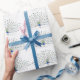 Hübsche Digitalmalerei eines Pfaues mit gestreuten Federn, ist auf kundenspezifischem Verpackungspapier gekachelt. Sie können die Hintergrundfarbe anpassen und den Papiertyp Ihrer Wahl auswählen.