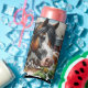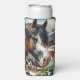 Hübsches personalisiertes kann kühler mit einem braunen, schwarz-weiß gepunkteten Pferd, umgeben von Sonnenblumen und einer rustikalen roten Scheune im Hintergrund.