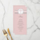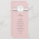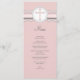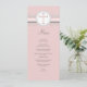 Ein reizendes rosa und graues Farbentwurf-Eigenschafts-Imitat schnürt sich und ein hübscher Querentwurf auf dieser hübschen Menükarte für Ihren religiösen Feier-Empfang.