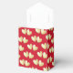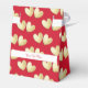 Hübsche elegante Gefälligkeitsboxen, die für Sie bereit sind, sich mit Ihren persönlichen Namen oder Ihrer Botschaft in tiefroter Rot mit den Herzen der goldenen Liebe zu gestalten.