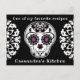 Eine Postkarte, auf der man auf der Rückseite ein Rezept schreiben kann, ist mit einem Zuckerschädel mit dunklen Akzenten in Schwarz, Weiß und Fuchsia dekoriert. Fügen Sie Ihren Namen und anderen Text zur Vorderseite hinzu.