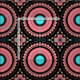 Nahtlos dekoratives geometrisches Muster mit geometrischen Formen in Rosa, Türkis und Schwarz.