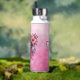 Persönliche Wasserflasche. Schöne rosa und goldene Eistüte mit violetten Blumen in einem Aquarell ai art.