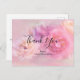 Vielen Dank Postkarte mit einem Foto mit einem Strauß rosa und weiße Nelken. Set auf einem traumhaften ätherischen Hintergrund.