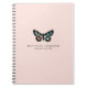 Ein hübsches Spiralnotebook mit kreativem rosa, aqua-blau und schwarz-farbenem Schmetterlingdesign auf einem rot-rosa Hintergrund. Geeignet für Yogalehrer, Ästhetiker, Kosmetologen, Massagetherapeuten und Heilkunstfachleute.