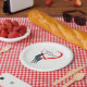 Dieses Pferd Happy Birthday Party Platte verfügt über ein hübsches schwarzes Pferd mit einem modernen bemalten roten Herz. ^