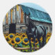 Hübsches Schwarzes Pferd und rustikaler Stall mit Runder Aufkleber