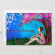 Handgezeichnete hübsche Dame sitzt unter einem zauberhaften, bunten Kalkbaum.