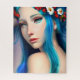 Puzzle mit märchenhafter Kunst. Hübsches zauberhaftes Märchenmädchen mit blauen Haaren und rot-weißen Blume in ihren Haaren und blauen Augen. Fantasiekunst ai art. generativekontrolle