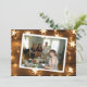 Personalisierte Weihnachtskarten. Hübscher Hintergrund aus verwittertem Holz mit leuchtenden Sternlichtern Weihnachtskarten. Fügen Sie Ihr Foto in den personalisierenden Bereich ein.