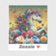 Personalisierter Aufkleber. Schönes weißes Pferd in farbenfrohen Blume. Whimsical ai art für Pferdefreunde.