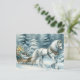 Ein hübsches, weißes Pferd mit festlichem Schlitten an einem Wintertag mit schneebedeckten Bäumen und einer hübschen, ruhigen Weihnachtsgeschmack-Rücksendeadresse.