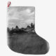 Schwarzweiss-Foto mit dem Zeichnen des Effektes eines Landungshubschraubers und des Autos im Hintergrund. Sie können viel Baum und irgendeine Wolke im Himmel sehen.