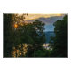 Die untergehende Sonne reflektiert den Hudson River und den bewölkten Himmel und schafft im Vordergrund Silhouetten von Bäumen.