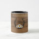 Die Tasse der Horseshoes ist mit Hufeisen und Gänsedaunen auf einem Holzboden aus Imitaten ausgestattet. Ideal für Ihre Western- oder Landküche!