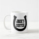 Glückliches Hufeisenlogo individuelle Kaffeemaschine Tasse. Personalisieren Sie mit Text, Glückszahl oder Monogramm. Schwarz/Weiß oder Sonderfarben. Ideal für Farm- oder Ranch-Besitzer, Pferdereiter, Pferdefreund, Bauer, Cowboy, Grottenbesitzer, Mitarbeiter, Vater etc. Western Typografie Schriftart. Auf zwei Seiten gedruckt.