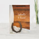 Einladende Gäste zu Ihrem nächsten Farm oder Western Ranch Thema Nuptials, wenn Sie die charmante Horseshoe und Satin Country Barn Wedding Einladung Grußkarte mit den persönlichen Namen der Braut und Bräutigam und spezifische Ehezeremonie Informationen. Diese informelle und elegante Einfallskarte zum Thema Pferde lädt mit einem malerischen digital verbesserten Foto eines rostigen Hufeisens und weißen Satins mit einem verwitterten braunen Holzhintergrund ein.