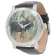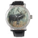 Uhr, Klassische Damenuhr mit schwarzen Lederarmband